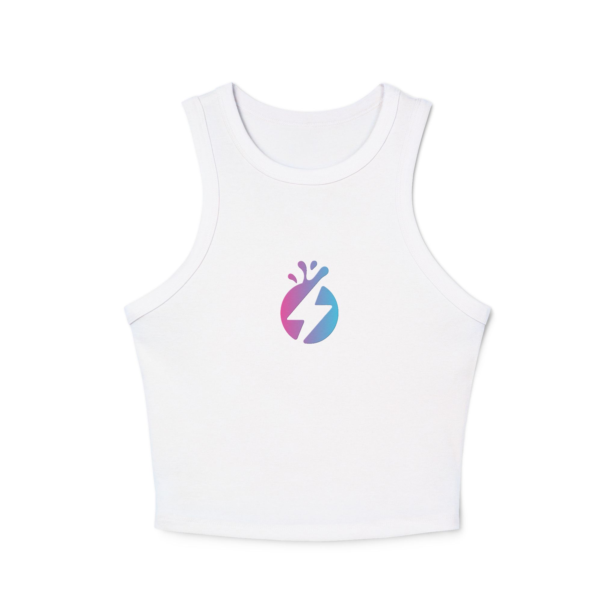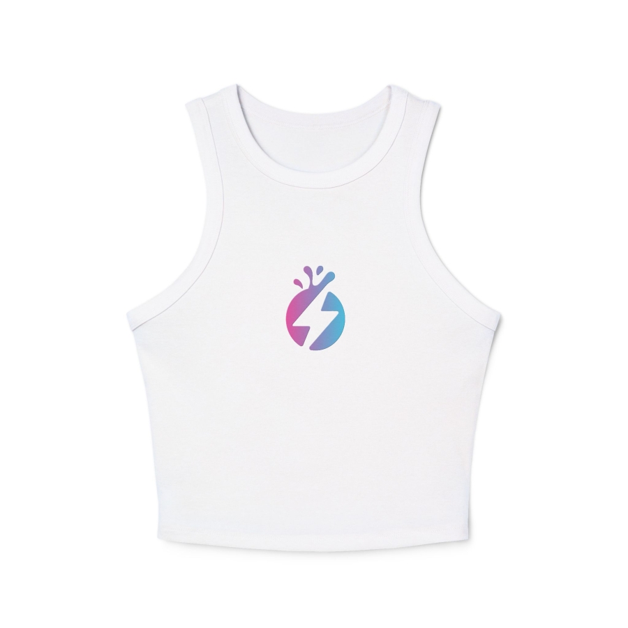 Light, close-fitting, and quietly modern — this micro rib racer tank brings minimalist energy to warm days and layered looks. The high neckline and mid-length cut create a sleek silhouette that works under a denim jacket, paired with high-waisted jeans, or solo for a casual walk. The fine 1×1 micro rib gives a subtle texture and comfortable stretch that moves with you, while the soft Airlume cotton blend keeps the fabric breathable and gentle against the skin. The small, colorful chest emblem adds a playful, contemporary accent without overpowering the clean lines. Easy to wear, easy to style — this tank feels lived-in from the first wear and keeps its shape through repeated use and washes.